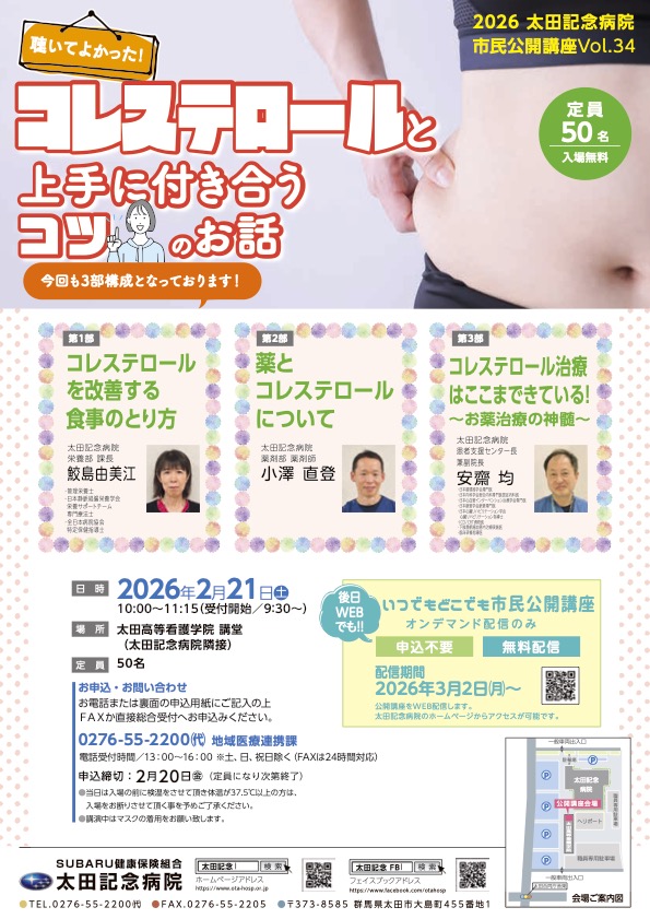 第34回市民公開講座を下記の通り開催させていただくことになりました。